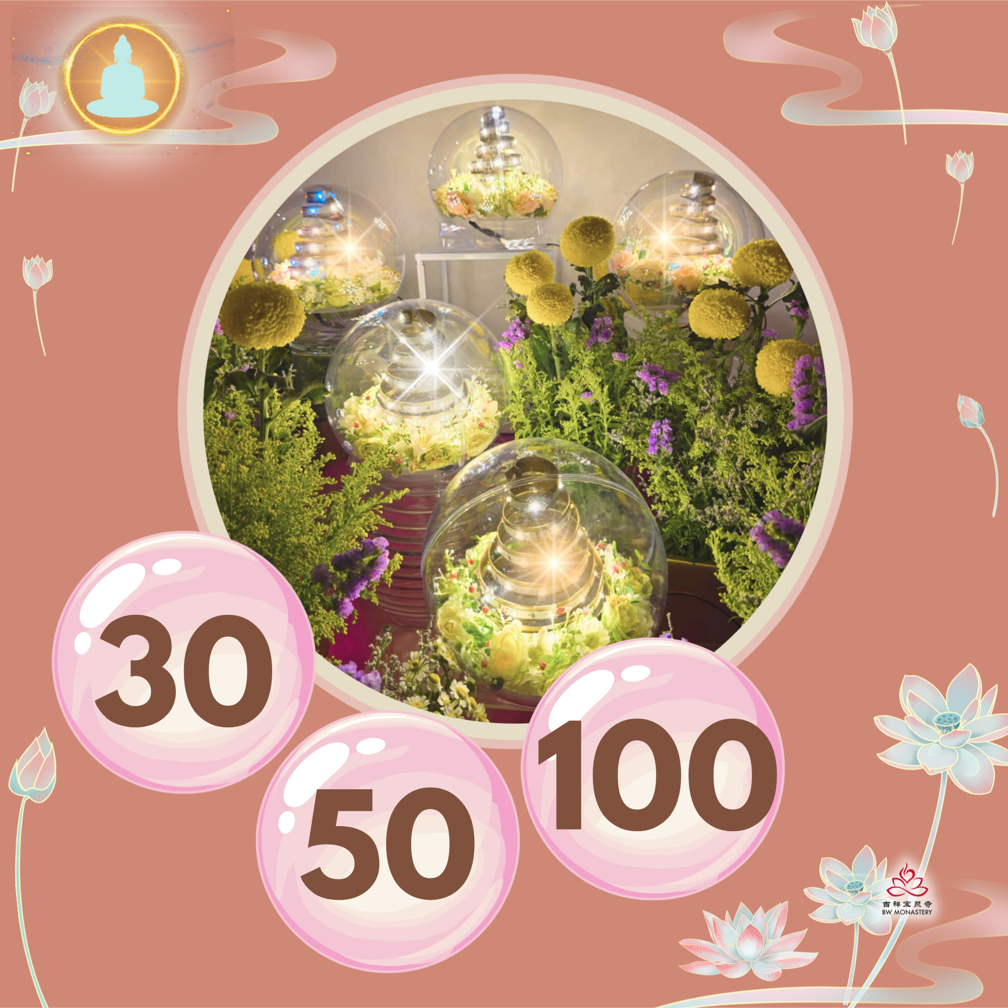🌸 Offer the flowers for self or on behalf of loved ones during Amitabha Budhha’s birthday! - ☘️ What kind of virtues do donors create:
